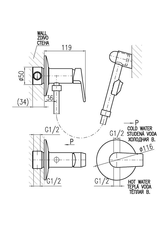 Гигиенический душ со смесителем Rav Slezak Colorado CO147/1BC белый