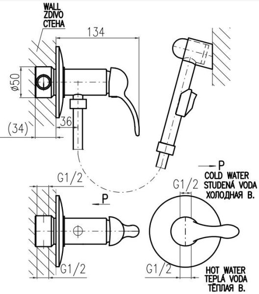 Гигиенический душ со смесителем Rav Slezak Labe L047/1Z золото купить