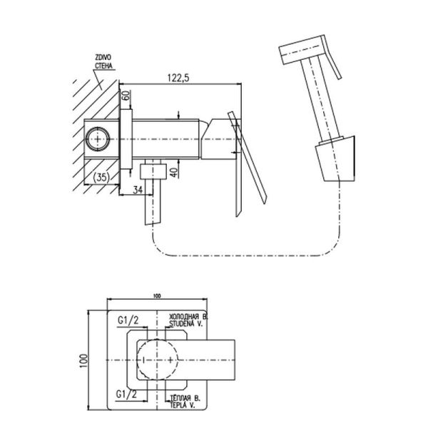 Длина шланга, см: 100