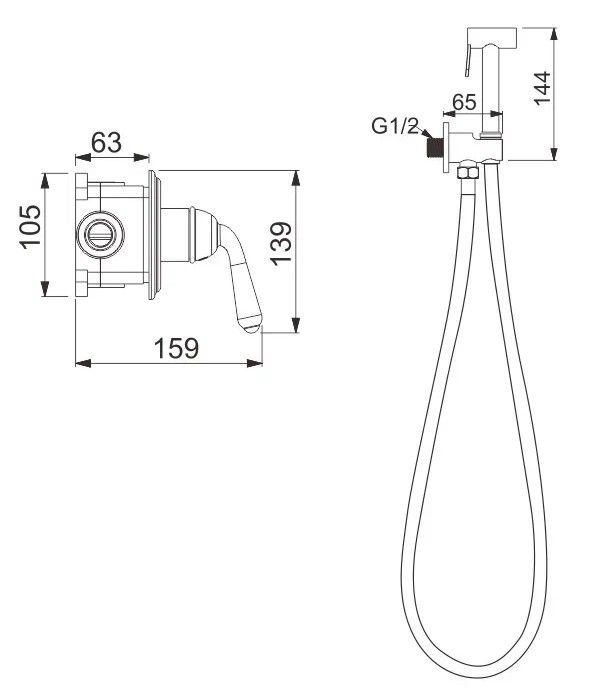 Гигиенический душ со смесителем Rose R0205E, золото.Управление: рычажное.Материал: латунь.Монтаж: внутренний (скрытый).