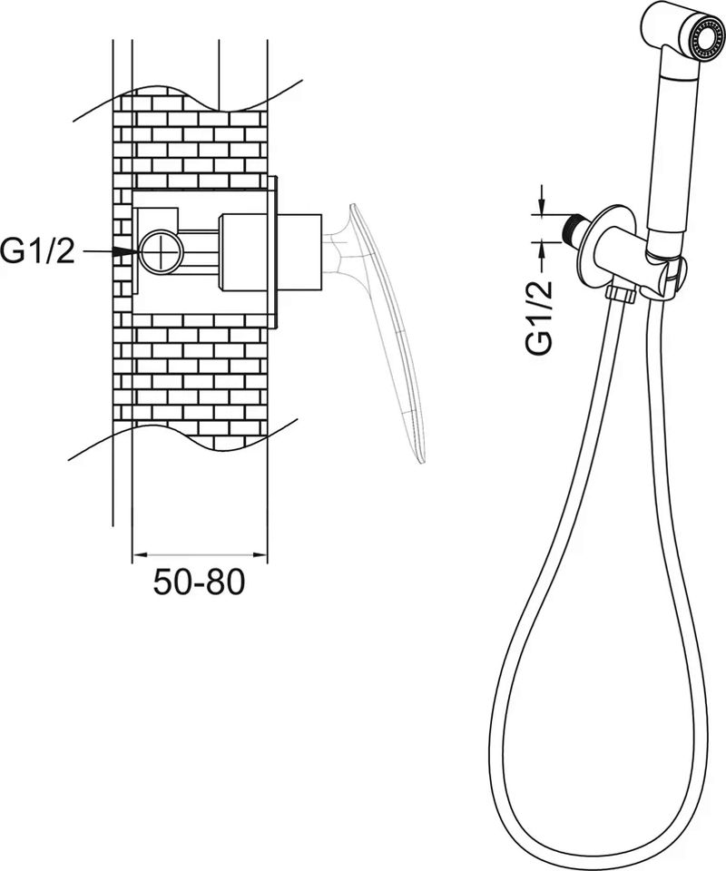 Гигиенический душ со смесителем Rose R1105H, черный.Управление: рычажное.Материал: латунь.Монтаж: внутренний (скрытый).