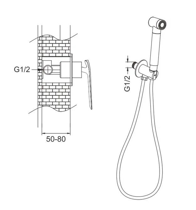 Гигиенический душ со смесителем Rose R1305, хром.Управление: рычажное.Материал: латунь.Монтаж: внутренний (скрытый).