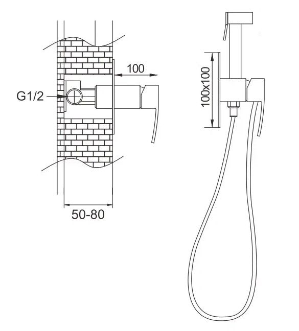 Гигиенический душ со смесителем Rose R1505F, белый/хром.Управление: рычажное.Материал: латунь.Монтаж: внутренний (скрытый).