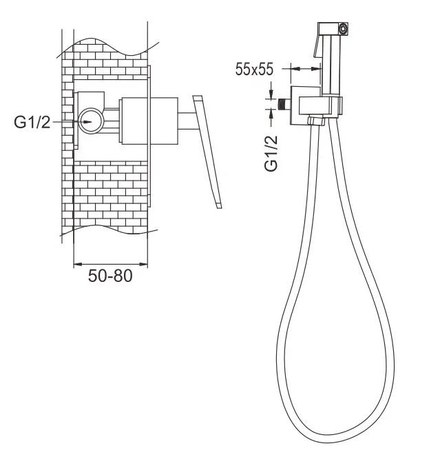 Гигиенический душ со смесителем Rose R1605F, белый/хром.Управление: рычажное.Материал: латунь.Монтаж: внутренний (скрытый).