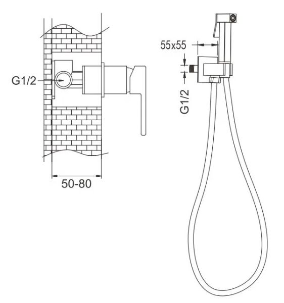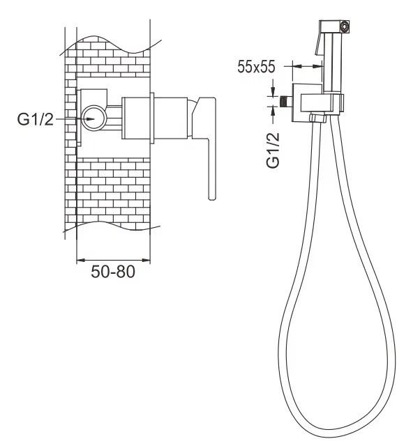 Гигиенический душ со смесителем Rose R2805H, черный.Управление: рычажное.Материал: латунь.Монтаж: внутренний (скрытый).