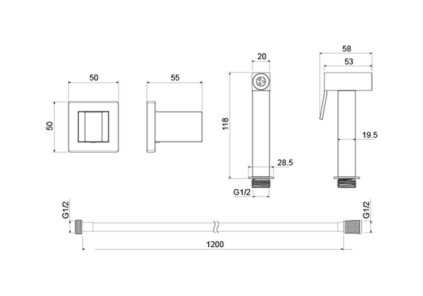 Гигиенический ручной душ Aquatek AQ2053MB черныйДлина, см: 11,8