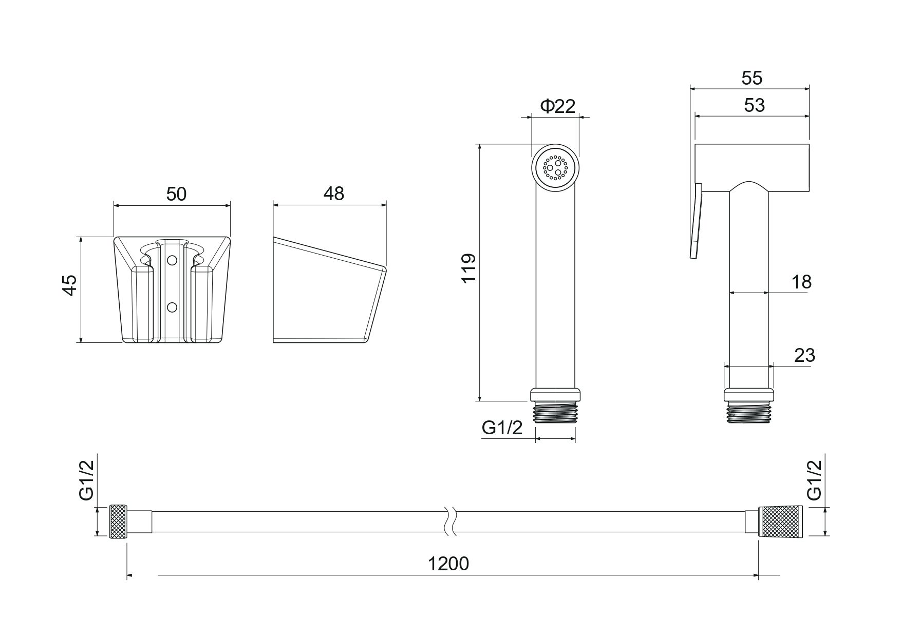 Гигиенический ручной душ Aquatek AQ2054BG со шлангом и держателем шлифованное золото купить