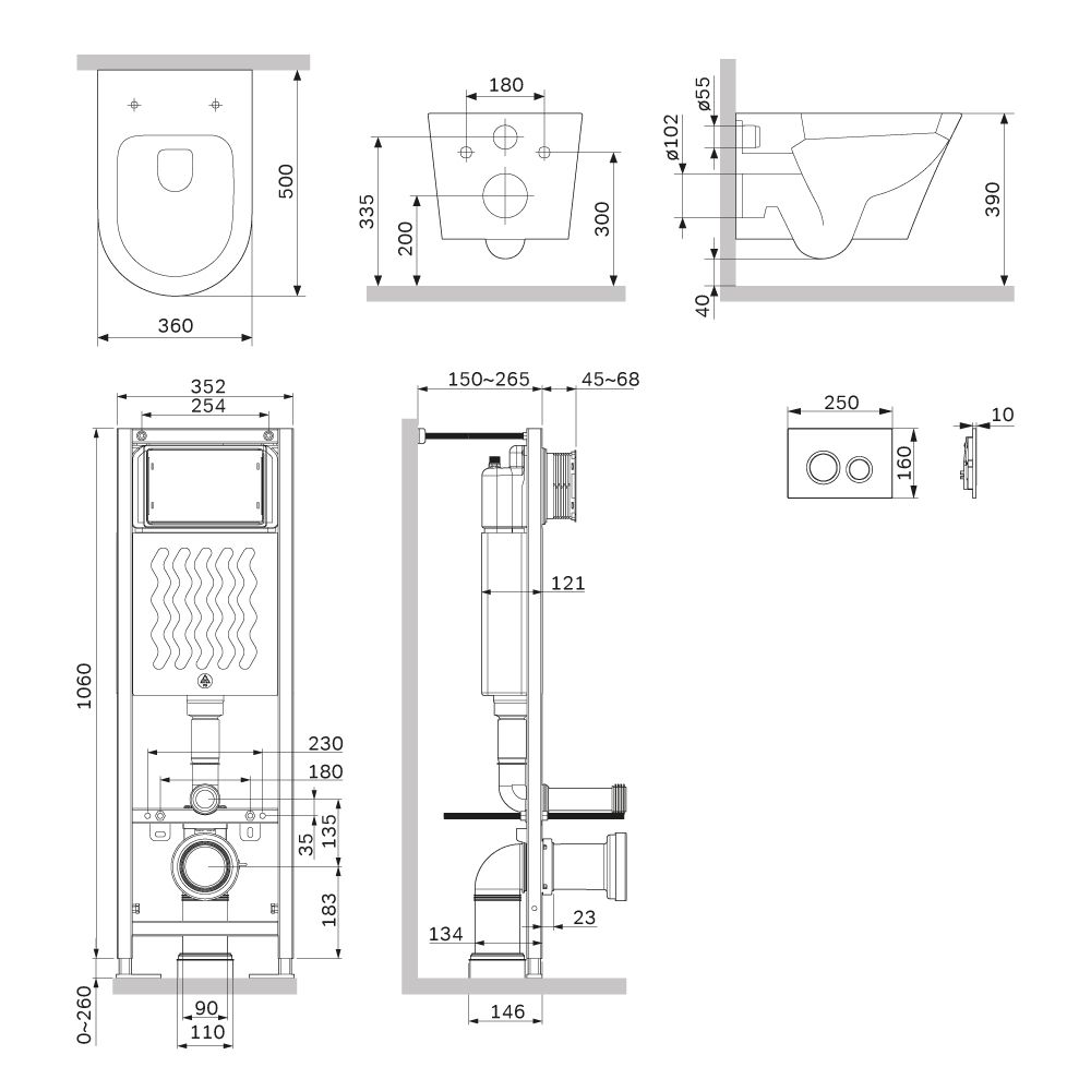 Тип:комплект: унитаз. инсталляция. клавиша смыва