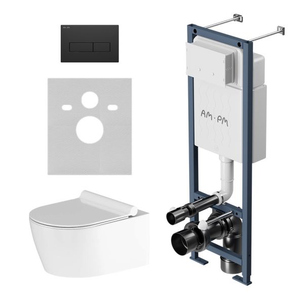 Инсталляция Am.Pm ErgoFit с подвесным унитазом без ободка с сиденьем микролифт и клавишей IS110338.DX77C1700 купить