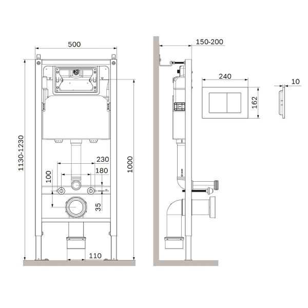 Размеры (ШхВхГ): 500х1230х200 мм.
