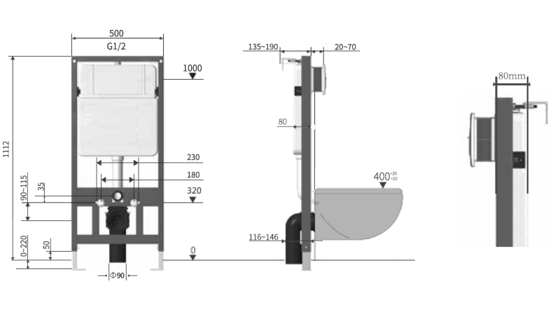 2 кнопки (2-х режимный слив воды)Межосевое расстояние, мм:
