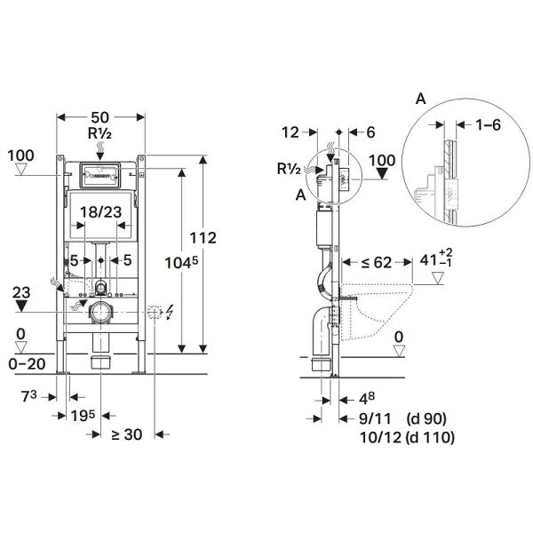 Инсталляция для унитаза Geberit Duofix Delta 458.134.21.2 с клавишей Delta 20, хром купить