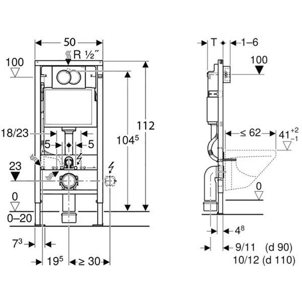 Для подвесных унитазов с размерами подключения согласно EN 33:2011.