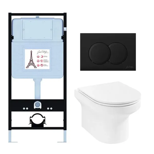 Инсталляция Jacob Delafon E21743RU-BL, с безободковым унитазом Elite, сиденье с микролифтом, клавиша черная матовая