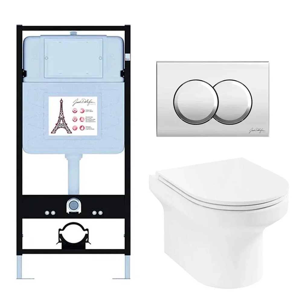 Инсталляция Jacob Delafon E21743RU-CP, с безободковым унитазом Elite, сиденье с микролифтом, клавиша хром
