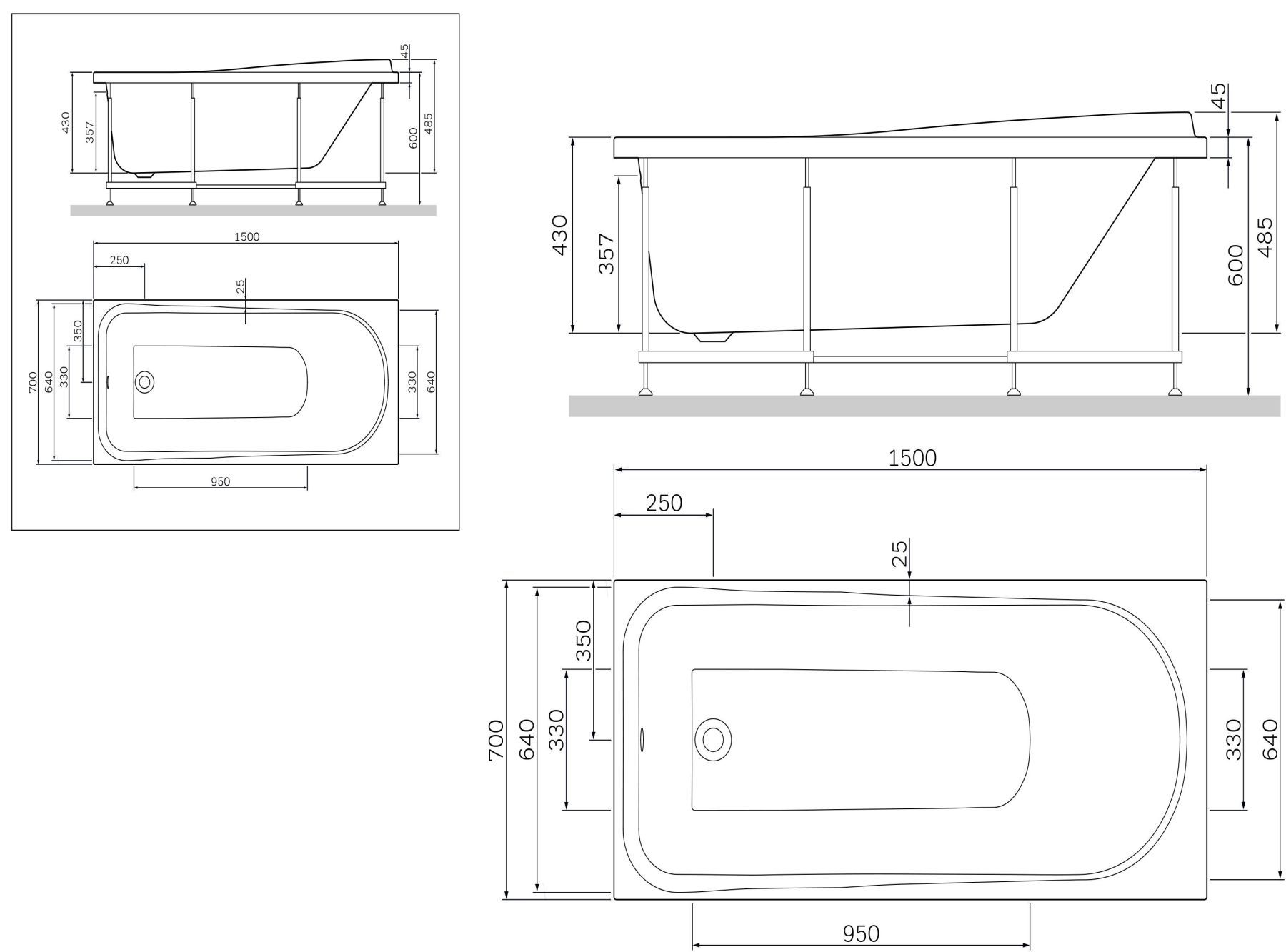 W80A-150-070W-R Like, каркас для ванны A0 150х70 см
