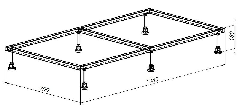 Размеры (ШхВхД): 1340х160х700 мм.