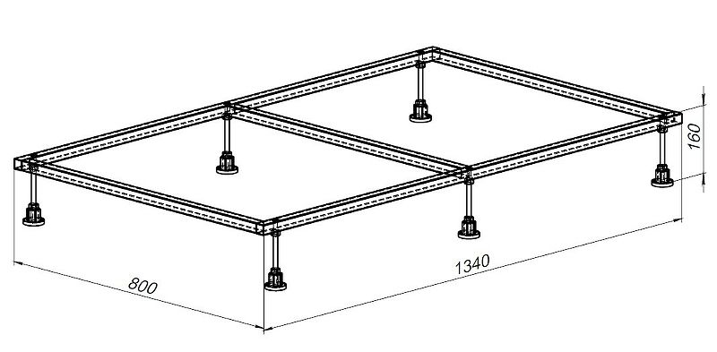 Размеры (ШхВхД): 1340х160х800 мм.