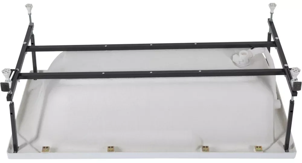 Каркас разборный для акриловой ванны Aquanet Extra 160 удобен в транспортировке, так как представляет собой набор деталей, которые необходимо собрать в надежную конструкцию самостоятельно. Металлические детали каркаса подвергаются трехступенчатой обработке, когда сначала профильная труба проходит абразивную зачистку на специальном станке, после чего готовые детали обрабатывают каустической содой, и, просушив, покрывают с помощью электростатического распылителя молотковой краской по металлу. Это гарантирует равномерность окрашивания и стойкость покрытия, благодаря чему каркас в сборе выглядит аккуратно и не ржавеет. Прост в сборке и установке. Расстояние от пола до нижней поверхности дна ванны можно регулировать максимально до 10 см с помощью ножек. Комплектация: - Каркас разборный