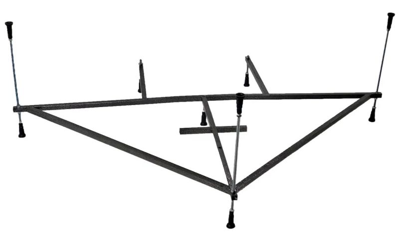 Усиленный цельносварной стальной каркас для ванны изготовлен из квадратного металлического профиля 2х2 см и окрашен темно-бронзовой молотковой краской. Каркас имеет 8 ножек и 4 опоры в борт ванны снизу. Предназначен для использования во влажных помещениях.