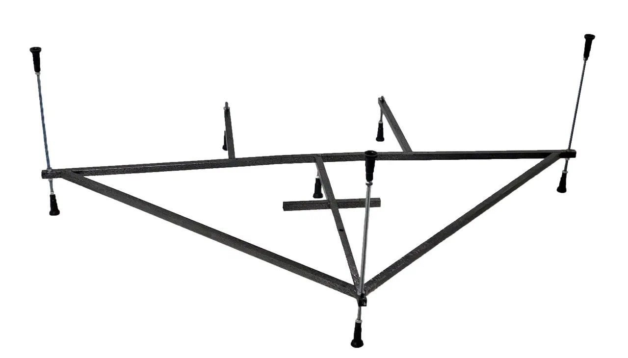 Усиленный цельносварной стальной каркас для прямоугольной ванны изготовлен из квадратного металлического профиля 2х2 см и окрашен темно-бронзовой молотковой краской. Каркас имеет 8 ножек и 4 опоры в борт ванны снизу. Предназначен для использования во влажных помещениях.
