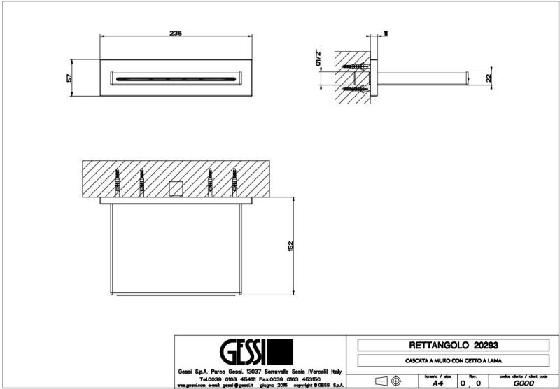Излив Gessi Cascata, каскадный, настенный, для смесителя удалённого управления, с размерами 236хh57х152 мм, представляет собой элегантное и функциональное решение для ванных комнат, ориентированных на современный стиль и минимализм. Его каскадная форма позволяет воде плавно стекать, создавая эффект водопада, что не только придает ванной комнате эстетичность, но и приносит расслабляющее чувство во время использования.