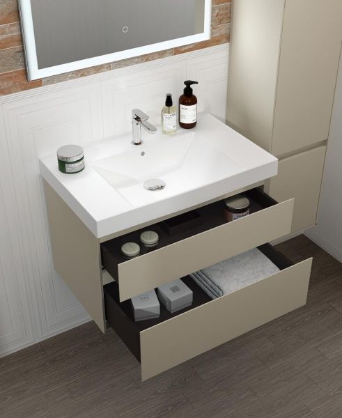 Мебельная раковина с удобной площадкой по краям и отверстием под смеситель, ширина 80 см. Чаша раковины расположена в центре, с отверстием слив\перелив. Возможна подвеска раковины на стену без тумбы (крепления входят в комплект). Донный клапан в комплект не входит, рекомендованный донный клапан DR.1\WHT. Рекомендуется использовать со смесителем FUTURA 66411KM.21.018. Сочетается с тумбами из серии CUBO.