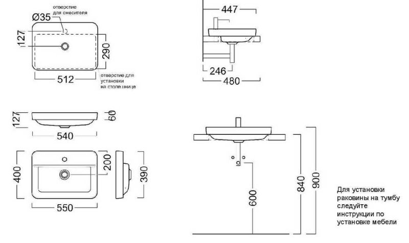 Kerama Marazzi Раковина PLAZA 55х40 см встраиваемая сверху купить