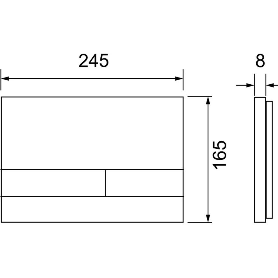 Панель смыва для смывных бачков TECE, фронтальная или верхняя установка. Сверхплоская металлическая панель смыва с двумя установленными на пружинах клавишами кулисного типа. В комплект поставки входят толкатели, крепежные элементы и инструмент для монтажа/демонтажа. Совместима с контейнером для гигиенических