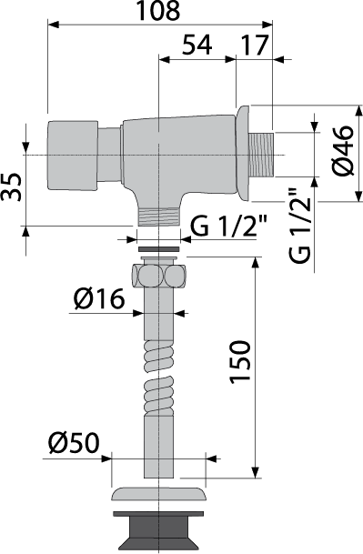 Кнопочный сливной вентиль для писсуара AlcaPlast ATS001 купить