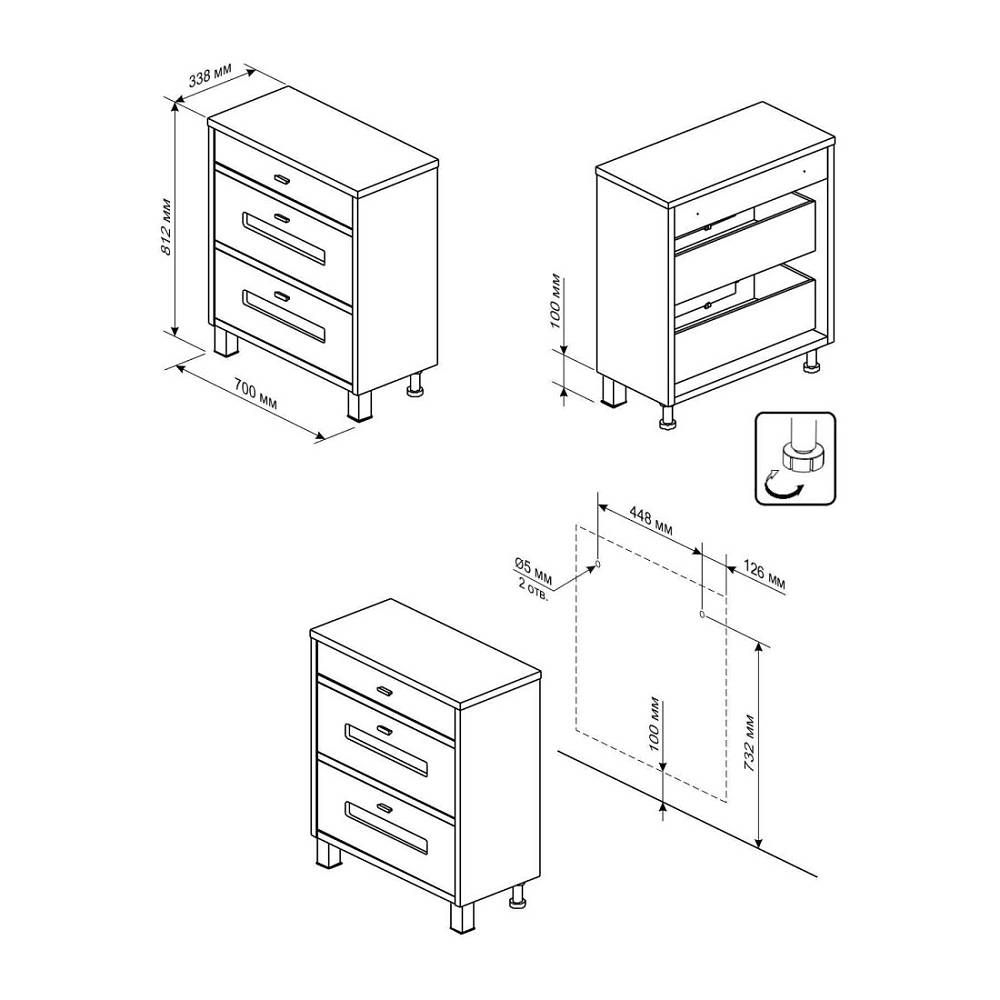 - три выдвижных ящика