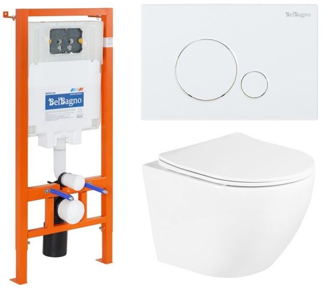 Комплект 3 в 1 BelBagno BB3105CHR/SC/BB002-80/BB014-SR-BIANCO унитаз подвесной с сиденьем UNO BB3105CHR/SC система инсталляции для унитазов BB002-80 с кнопкой смыва BB014-SR-BIANCO купить