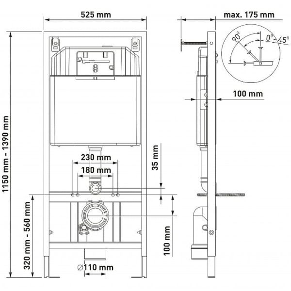Инсталляция со смывным бачком Novum и клавишей смыва L4.