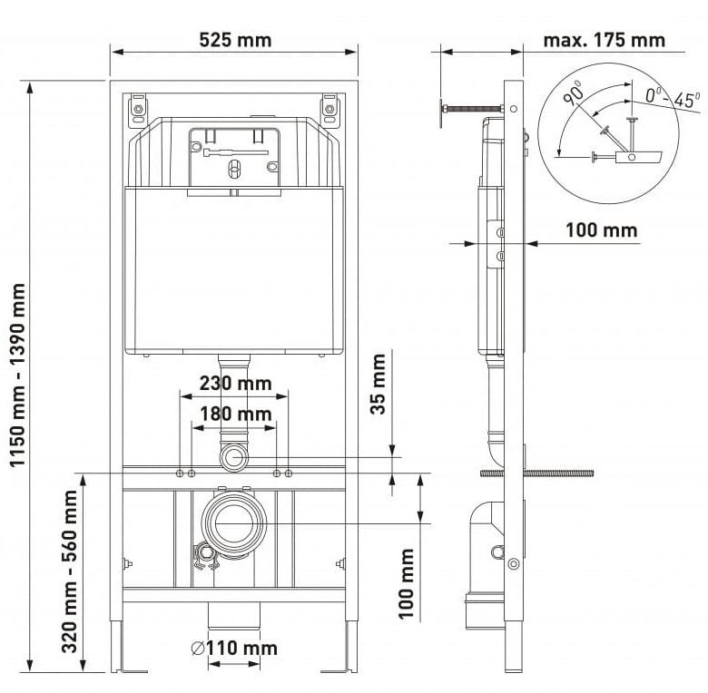 Полный комплект BERGES для монтажа подвесного унитаза. 1. Инсталляция NOVUM525Толщина бачка 80 мм.Межосевое расстояние под крепежные шпильки унитаза 18 и 23 см.Резервуар воды объемом 10 литров с тепло-шумоизоляцией.Уровень шума при давлении 3 бар не превышает 13 дБ.Подвод воды сверху (G1/2 наружная).Объем смыва 3/6 литра с возможностью регулировки. Металлический каркас, окрашенный антикоррозийной эмалью, расчетная нагрузка до 400 кг.Ножки регулировки высоты из оцинкованной стали. Возможность установки в угол. 2. кнопка L5 черная Soft TouchABS-пластик 3. унитаз MASCON Rimless,безободковая система смыва, антибактериальное покрытиеэкономия воды, скрытый крепеж 4. сиденье дюропласт Toma Slim SOмикролифт, быстросъем. Все крепежи для установки в комплекте