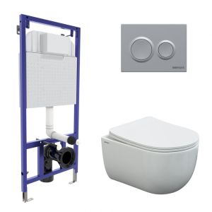 Полный комплект BERGES для монтажа подвесного унитаза. 1. Инсталляция NOVUM525Толщина бачка 80 мм.Межосевое расстояние под крепежные шпильки унитаза 18 и 23 см.Резервуар воды объемом 10 литров с тепло-шумоизоляцией.Уровень шума при давлении 3 бар не превышает 13 дБ.Подвод воды сверху (G1/2 наружная).Объем смыва 3/6 литра с возможностью регулировки. Металлический каркас, окрашенный антикоррозийной эмалью, расчетная нагрузка до 400 кг.Ножки регулировки высоты из оцинкованной стали. Возможность установки в угол. 2. кнопка О2 матовый хромABS-пластик 3. унитаз , VENTAS Rimlessбезободковая система смыва, антибактериальное покрытиеэкономия воды, скрытый крепеж 4. сиденье дюропласт Ventas Slim SOмикролифт, быстросъем Все крепежи для установки в комплекте
