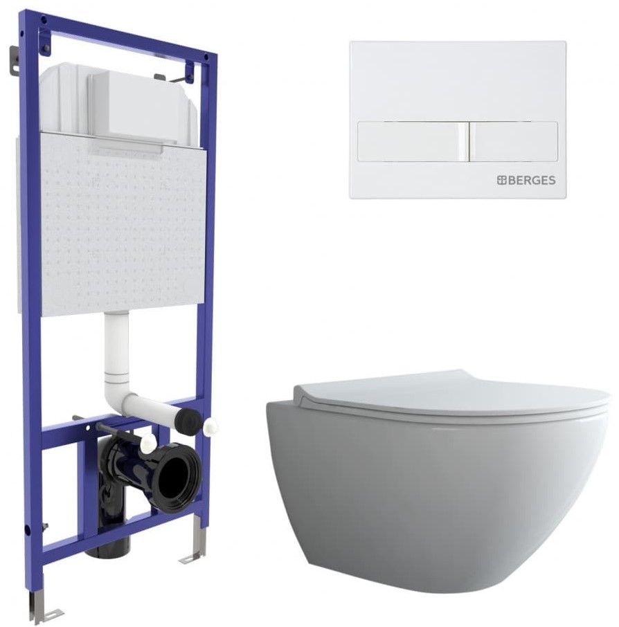 Комплект Berges 4в1 043265: инсталляция NOVUM525 кнопка L1 белая унитаз Puma XL Rimless сиденье Toma Slim SO купить
