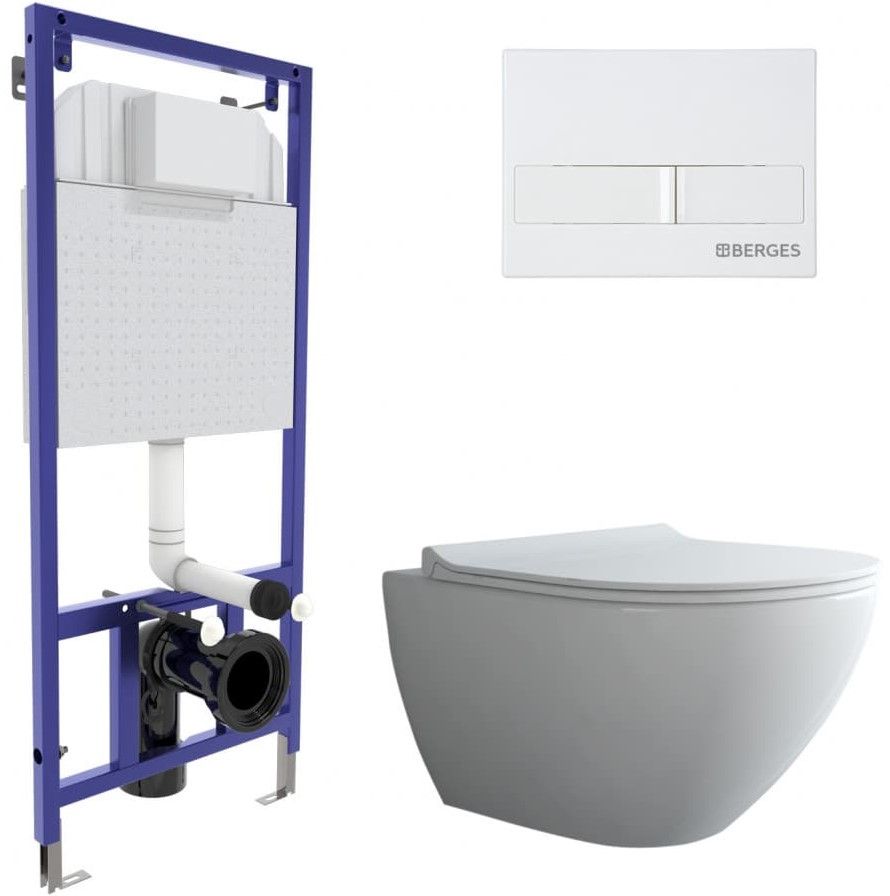 Комплект Berges 4в1 043271: инсталляция NOVUM525 кнопка L1 белая унитаз Puma Rimless сиденье Toma Slim SO купить