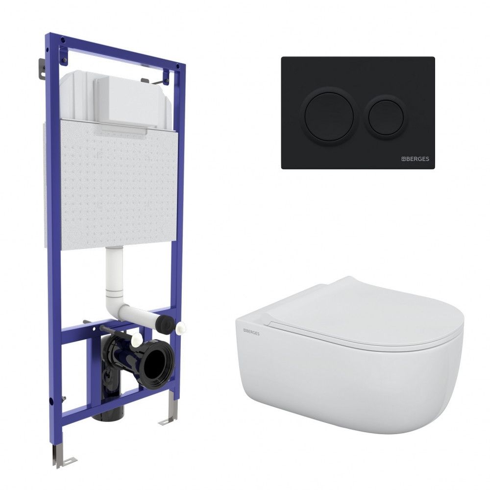 Комплект Berges 4в1 043303: инсталляция NOVUM 525 кнопка O5 черная Soft Touch унитаз EGO XL Rimless сидение Okus Slim SO купить
