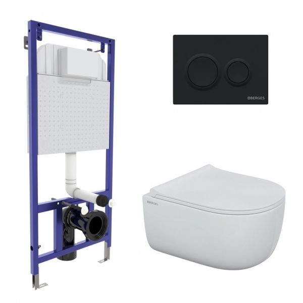 Комплект Berges 4в1 043311: инсталляция NOVUM 525 кнопка O5 черная Soft Touch унитаз EGO Rimless сидение Okus Slim SO купить
