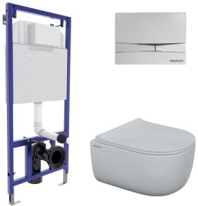 Комплект Berges 4в1 047253: инсталляция NOVUM525 кнопка F3 хром глянец унитаз EGO Rimless сиденье Toma Slim SO купить