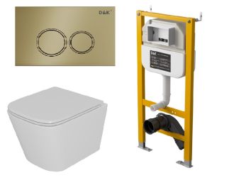 Комплект Унитаз подвесной безободковый DQ Berlin DT1436016+Инсталляция рамная скрытого монтажа DQ DI8050127, 500*117*1270мм, для подвесного унитаза+Клавиша смыва DQ Bayern DB1529007, матовое золото