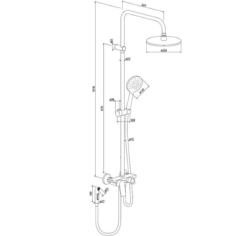 Диаметр верхнего душа: 230 мм.