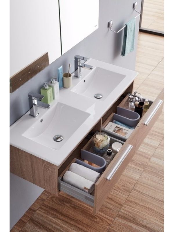 1. Многослойное дерево, 2. Два выдвижных ящика с доводчиками 3. Цвет: темный дуб . 4.Зеркальный шкаф 5.Раковина в комплекте.
