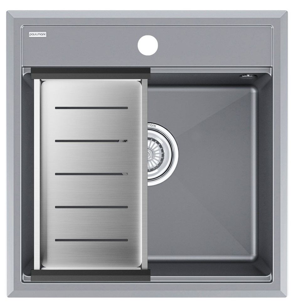 Комплект Paulmark: мойка Stepia 50 и коландер Advance PM115051-GRM+A375-BS серый металлик/брашированная нержавеющая сталь купить