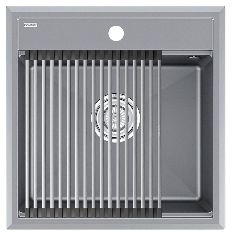Комплект Paulmark: мойка Stepia 50 и ролл-мат Step PM115051-GRM+R375-BS серый металлик/брашированная нержавеющая сталь купить