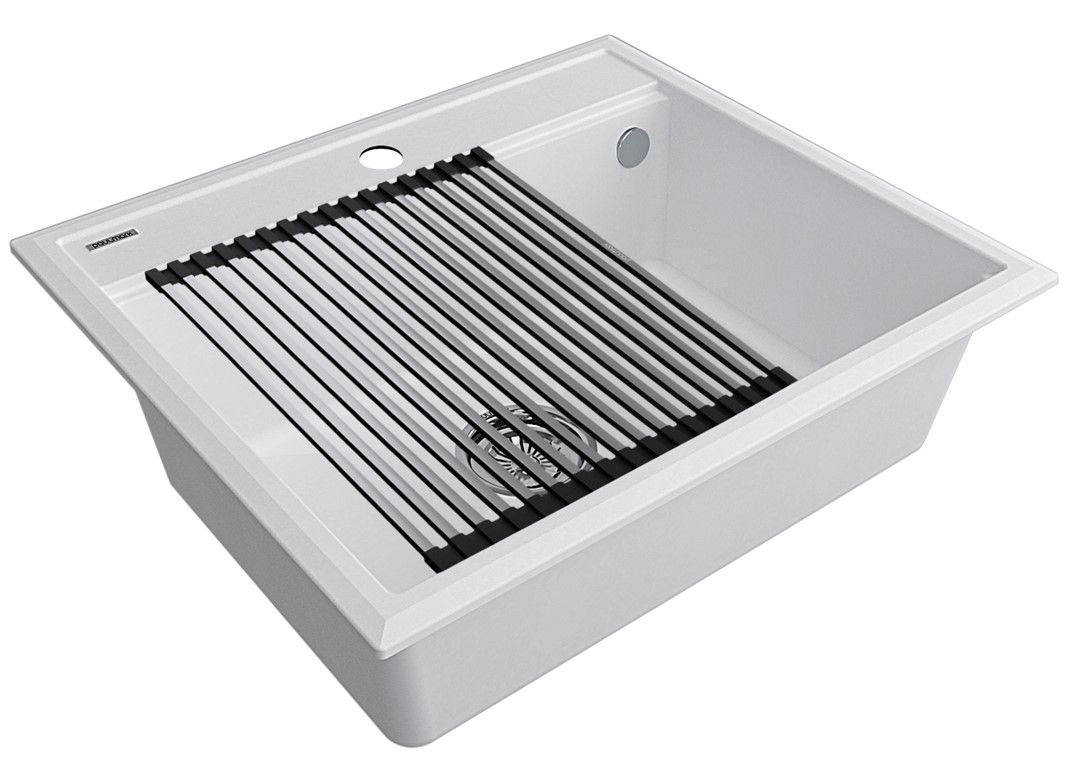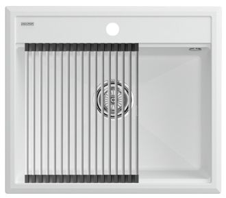 Комплект мойка STEPIA 60 + ролл-мат STEP, PM115951-WH+R375-BSСтильный и многофункциональный комплект мойки из композитного материала на основе гранита и ролл-мата из высококачественной нержавеющей стали для создания комфортной рабочей зоны на вашей кухне.Мойка STEPIA 60 изготовлена из IT-GRANIT – композитного материала на основе гранита, благодаря чему мойка не потеряет свой первоначальный цвет за многие годы использования даже при длительном воздействии солнечных лучей. Материал мойки устойчив к сколам, царапинам и деформациям. На горизонтальных гранях чаши мойки предусмотрены специальные выступы-ступеньки, которые позволяют использовать такие аксессуары, как ролл-маты, доски, коландеры и пр. для создания дополнительной рабочей поверхности на кухне. Дно чаши мойки имеет 4 грани, направленных к сливу под индивидуальным градусом для максимально быстрого ухода воды.
