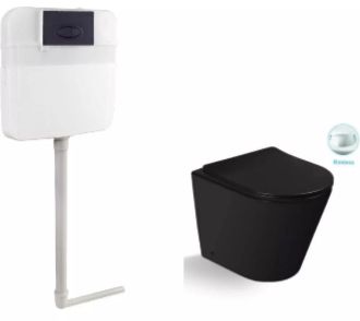Комплект SantiLine SL-5020MB + SL-05 приставной унитаз чёрный матовый с бачком скрытого монтажа и клавишей смыва чёрный матовый купить