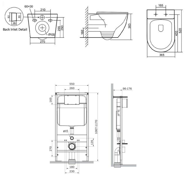 - Расстояние между болтами для монтажа унитаза: 18 см.