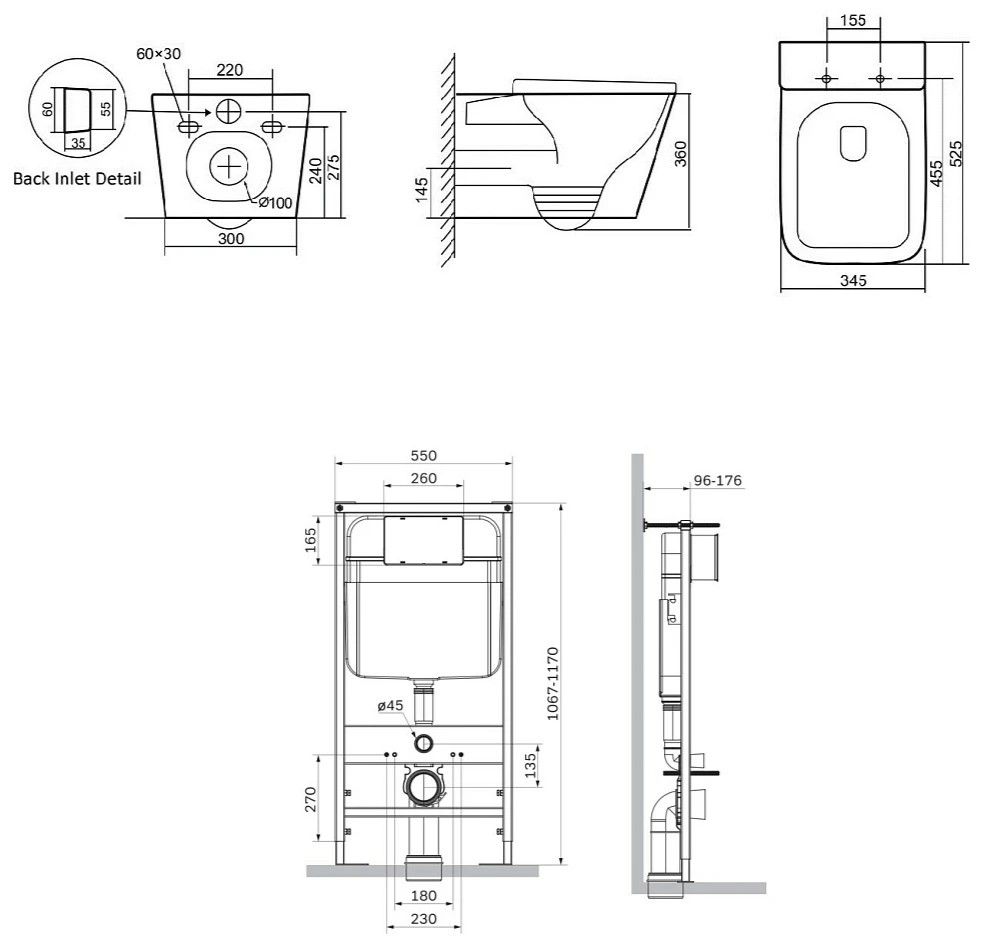 - Монтаж: встраиваемая перед стеной.