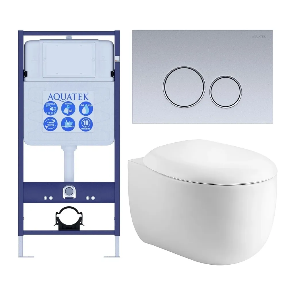 Комплект SET AQUATEK АЛЬТАИР cm-019 4в1 унитаз с инсталляцией кнопкой и сиденьем микролифт купить